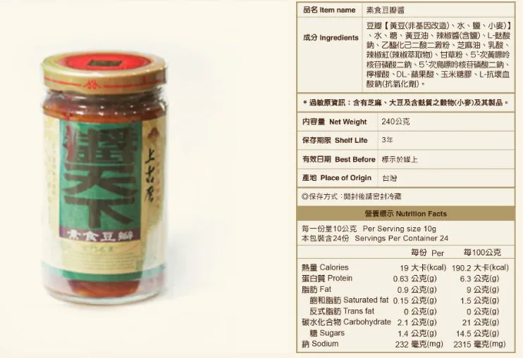 金門邁全球x金門聖祖-醬天下系列-素食豆瓣醬(純素)(共5瓶)