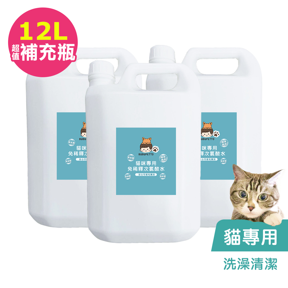 BUBUPETTO-貓咪洗澡清潔用免稀釋次氯酸水4000mlx3瓶(寵物)