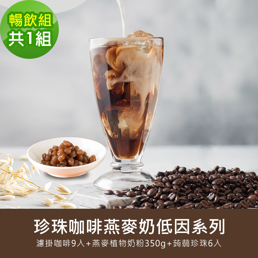 順便幸福-好纖好鈣蒟蒻珍珠咖啡燕麥奶暢飲組1組(低因系列濾掛咖啡+燕麥植物奶粉+即食蒟蒻粉圓珍珠)