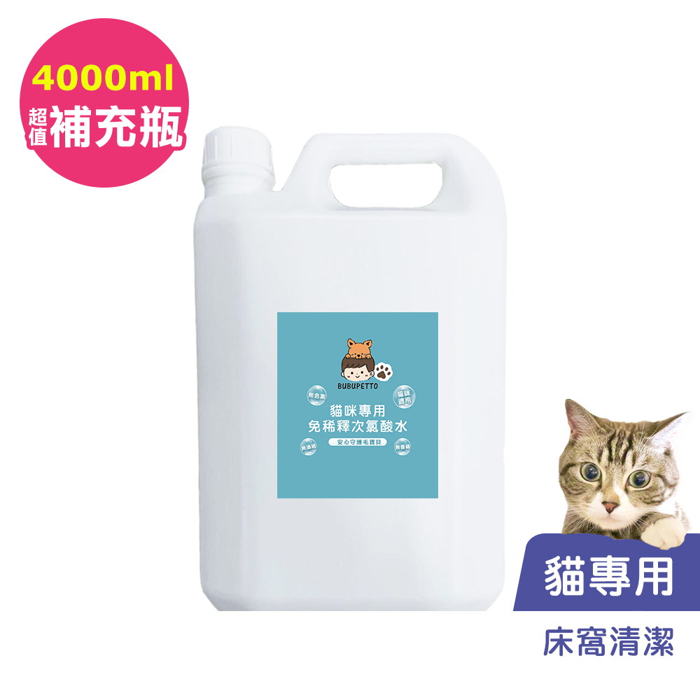 BUBUPETTO-貓咪寵物床清潔用免稀釋次氯酸水4000mlx1瓶(寵物)