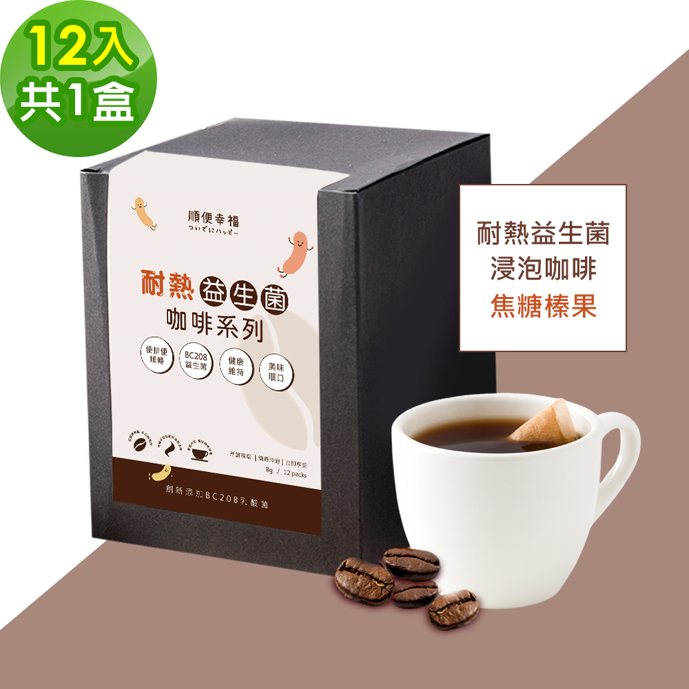 順便幸福-益生菌浸泡咖啡-焦糖榛果12包x1盒(使排便順暢 乳酸菌)