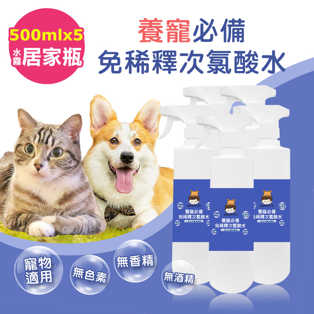 BUBUPETTO-毛孩必備免稀釋次氯酸水500mlx5瓶(毛小孩 寵物 拖地)