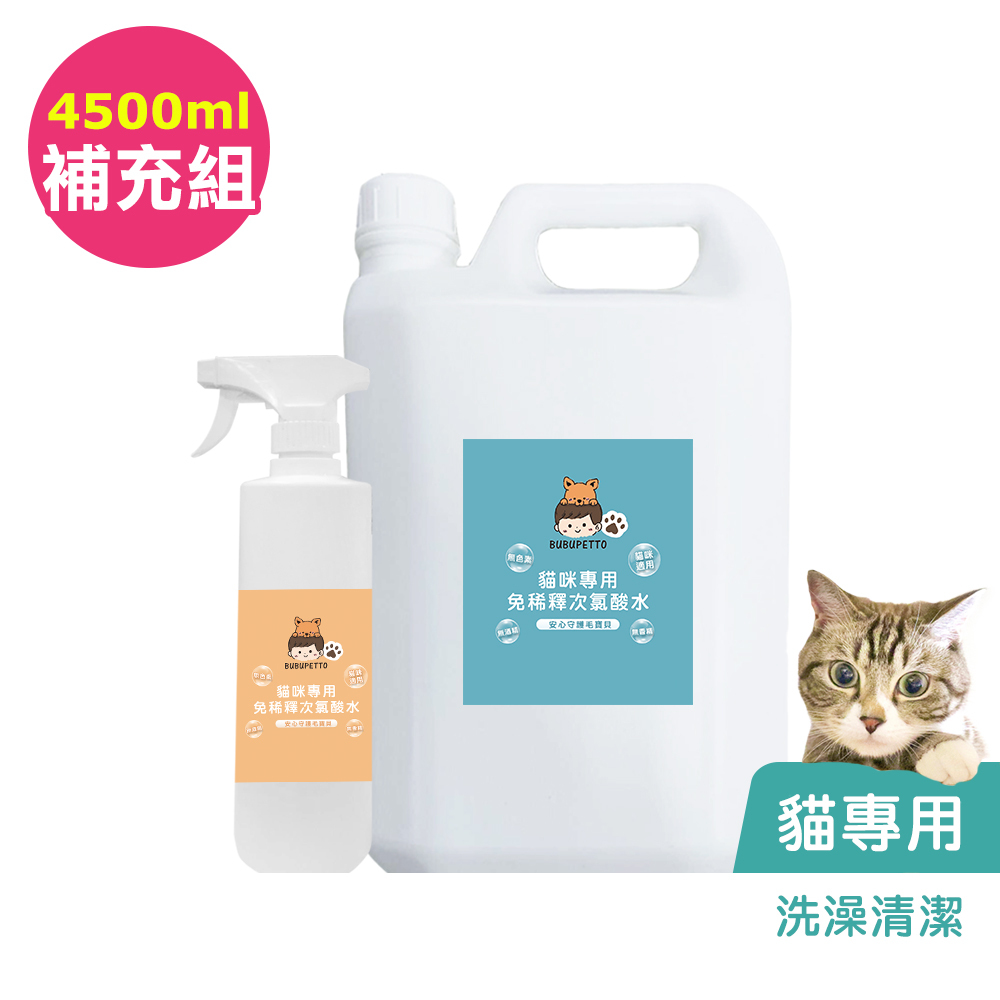 BUBUPETTO-貓咪用品清潔用免稀釋次氯酸水500mlx5瓶(寵物)