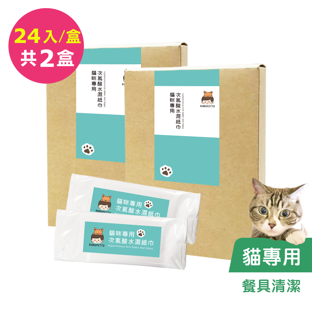 BUBUPETTO-貓咪餐碗清潔用次氯酸水濕紙巾24片x2盒(寵物)