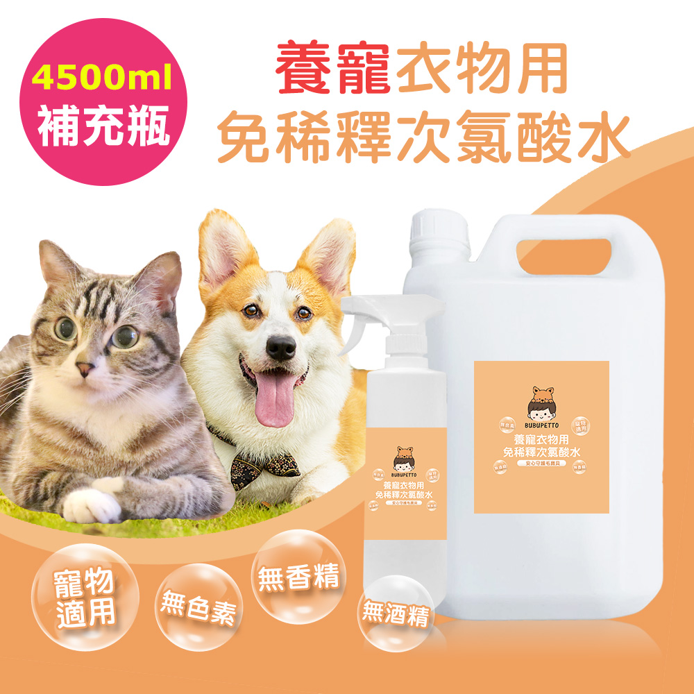 BUBUPETTO-毛孩衣物用免稀釋次氯酸水-4000mlx1+500mlx1(毛小孩 寵物 衣物)