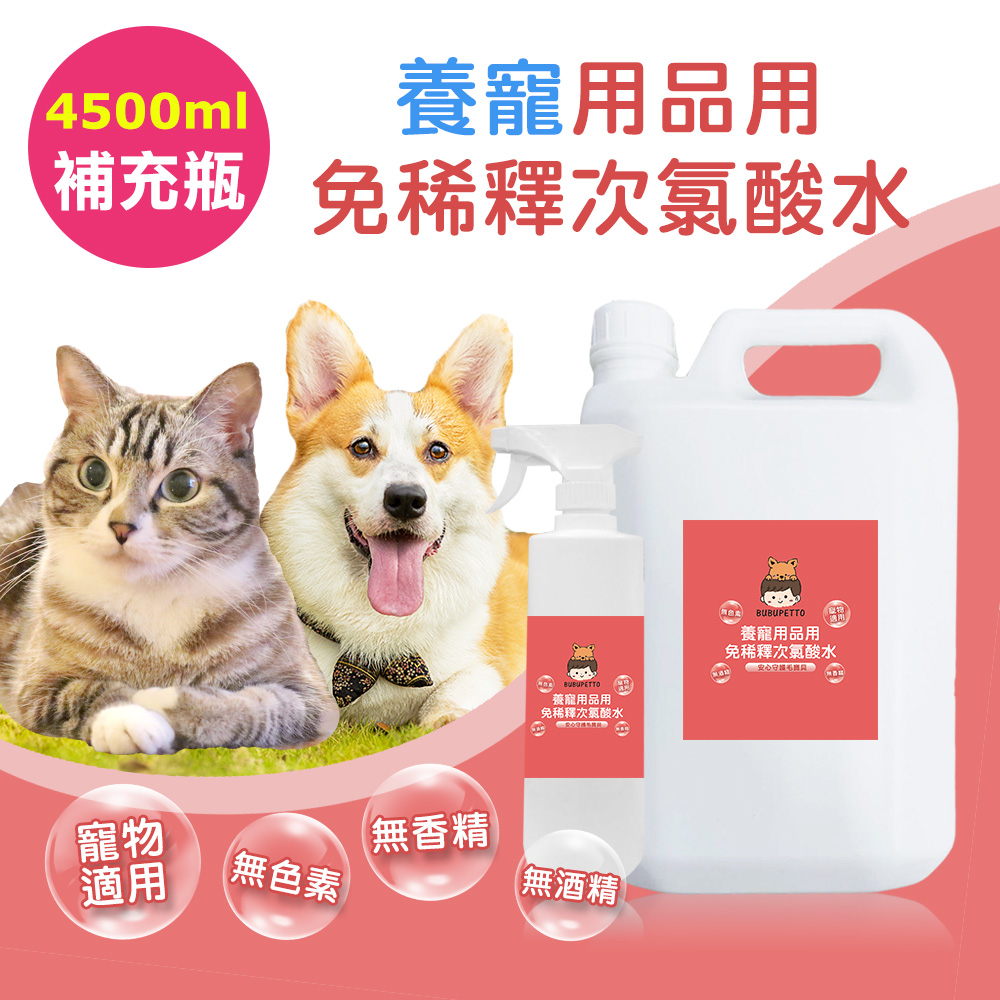 BUBUPETTO-毛孩用品用免稀釋次氯酸水-4000mlx1+500mlx1(毛小孩 寵物 用品)