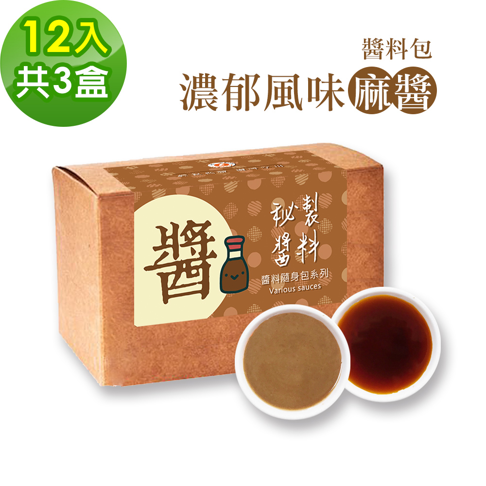 樂活e棧-秘製經典濃郁風味麻醬12包/盒,共3盒(麻醬30g 醋醬15g 素食 隨身包)
