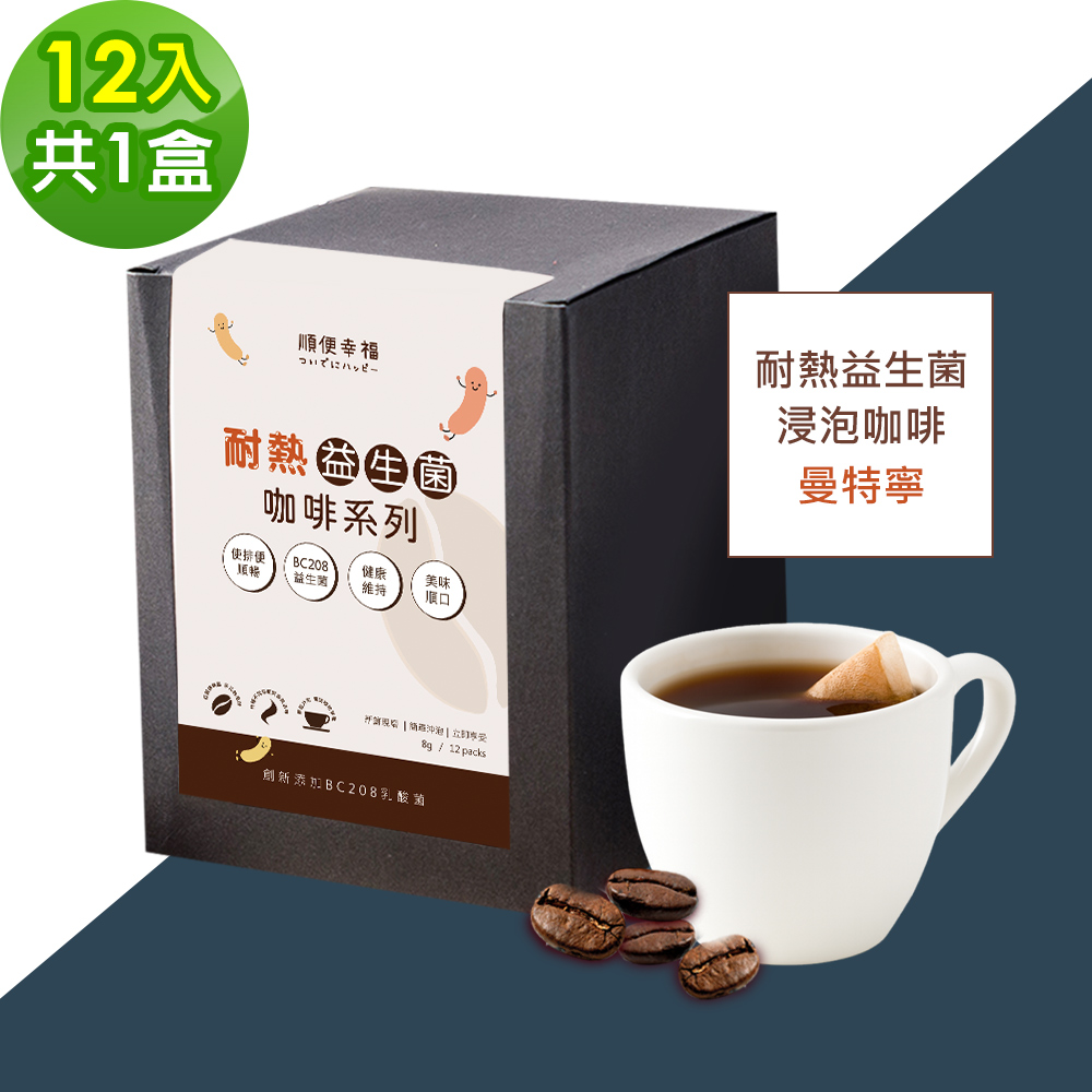 順便幸福-益生菌浸泡咖啡-曼特寧12包x1盒(使排便順暢 乳酸菌)