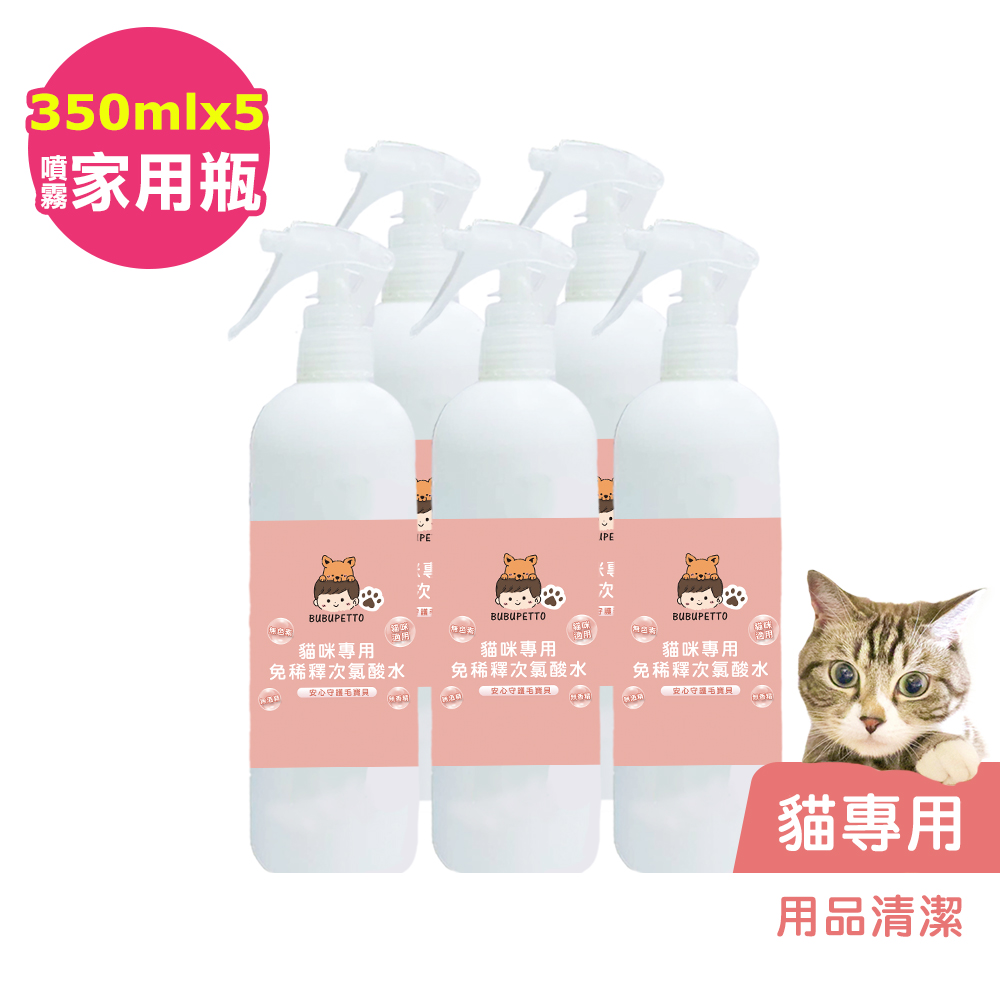 BUBUPETTO-貓咪用品清潔用免稀釋次氯酸水350mlx5瓶(寵物)