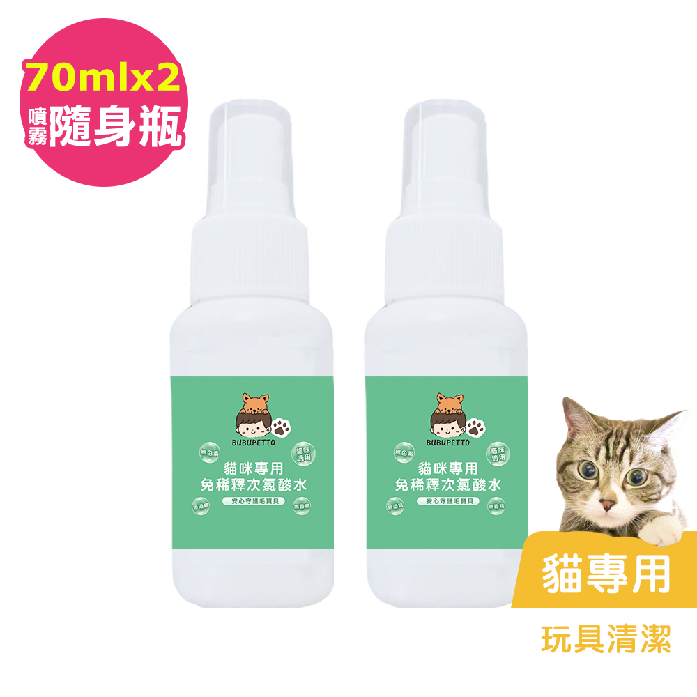 BUBUPETTO-貓咪玩具清潔用免稀釋次氯酸水70mlx2瓶(寵物)