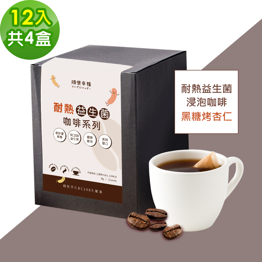 順便幸福-益生菌浸泡咖啡-黑糖烤杏仁12包x4盒(使排便順暢 乳酸菌)