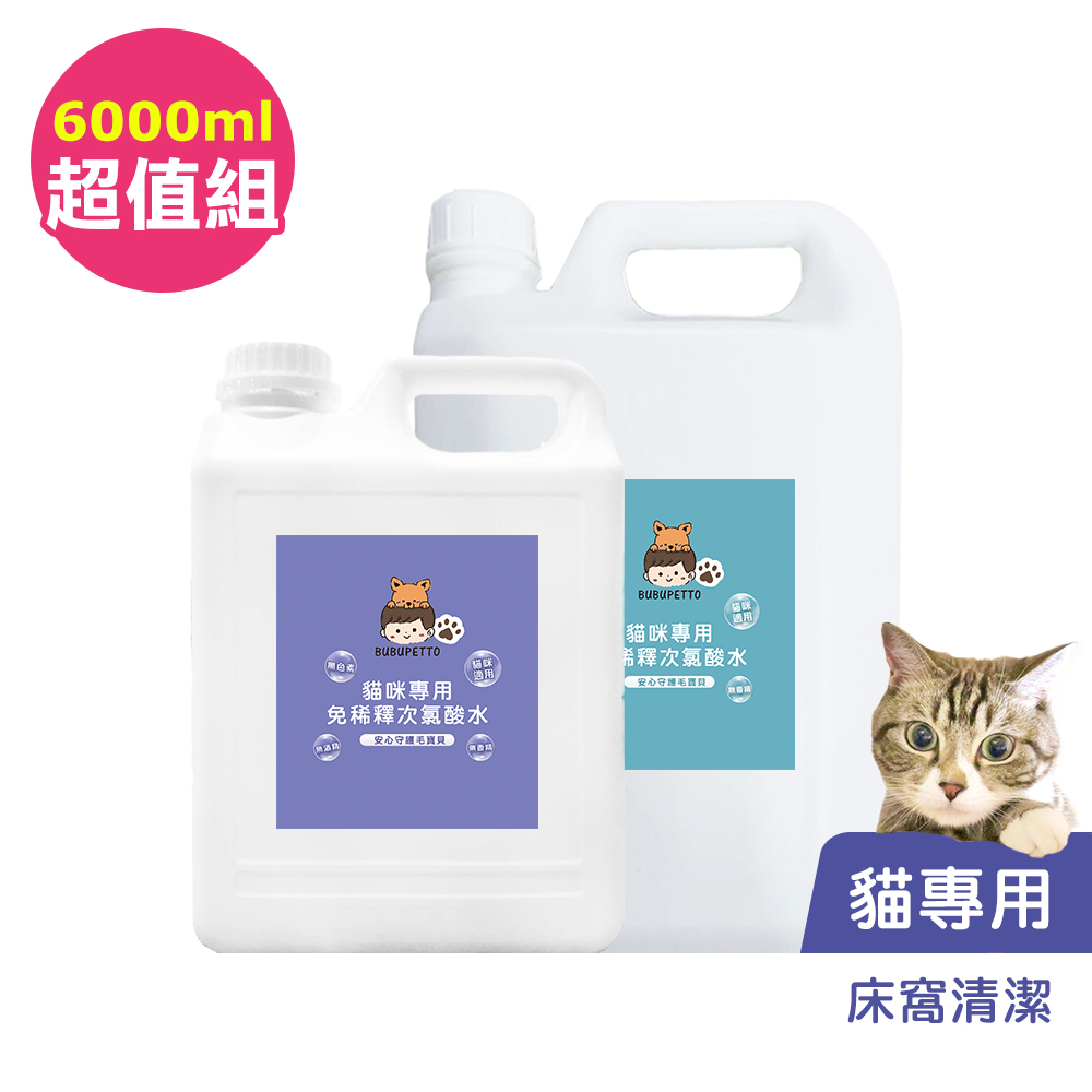 BUBUPETTO-貓咪寵物床清潔用免稀釋次氯酸水-超值組6000mlx1組(寵物 環境 器皿 用品)