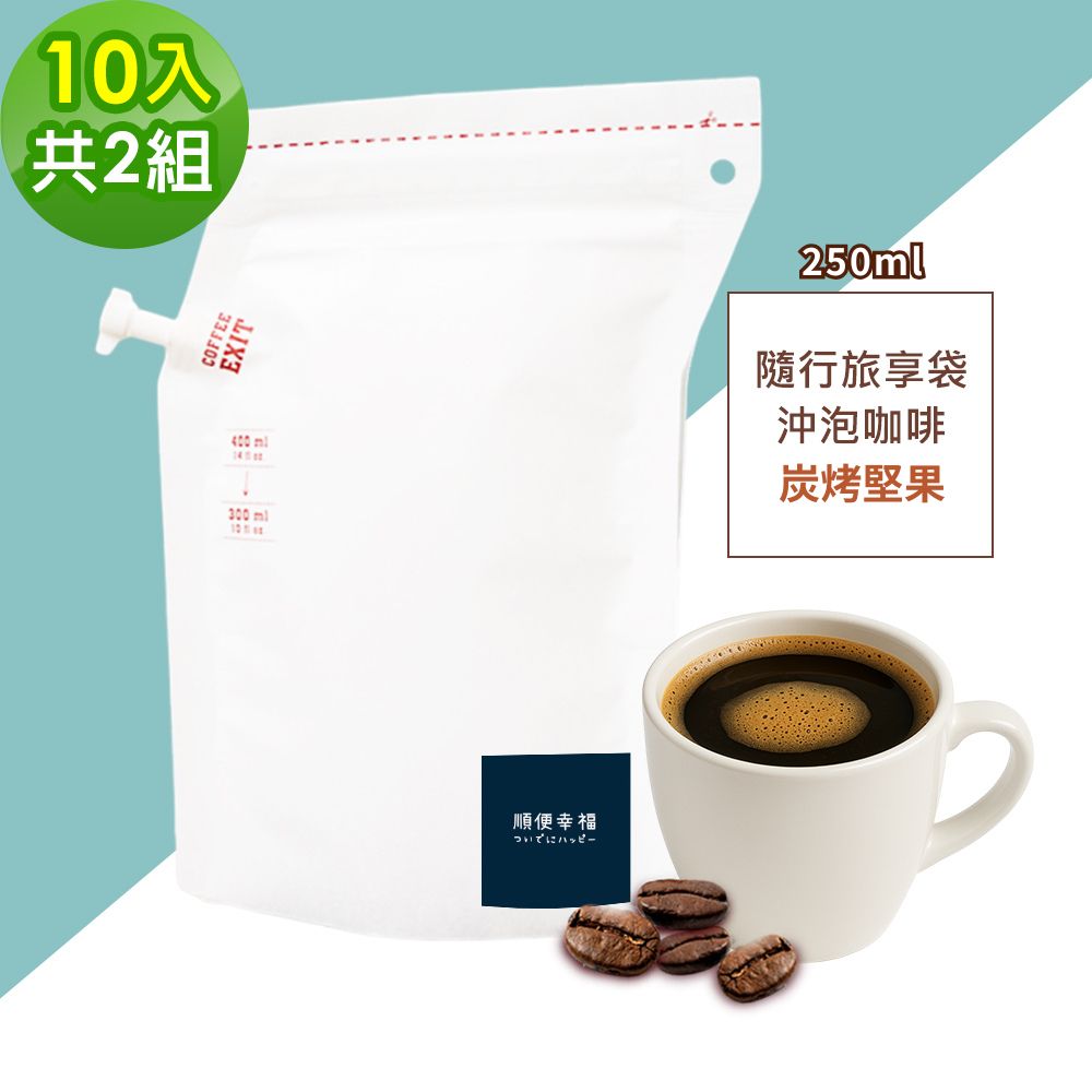 順便幸福-隨行旅享袋-炭烤堅果咖啡10入x2組(250ml 濾袋 旅行 沖泡)