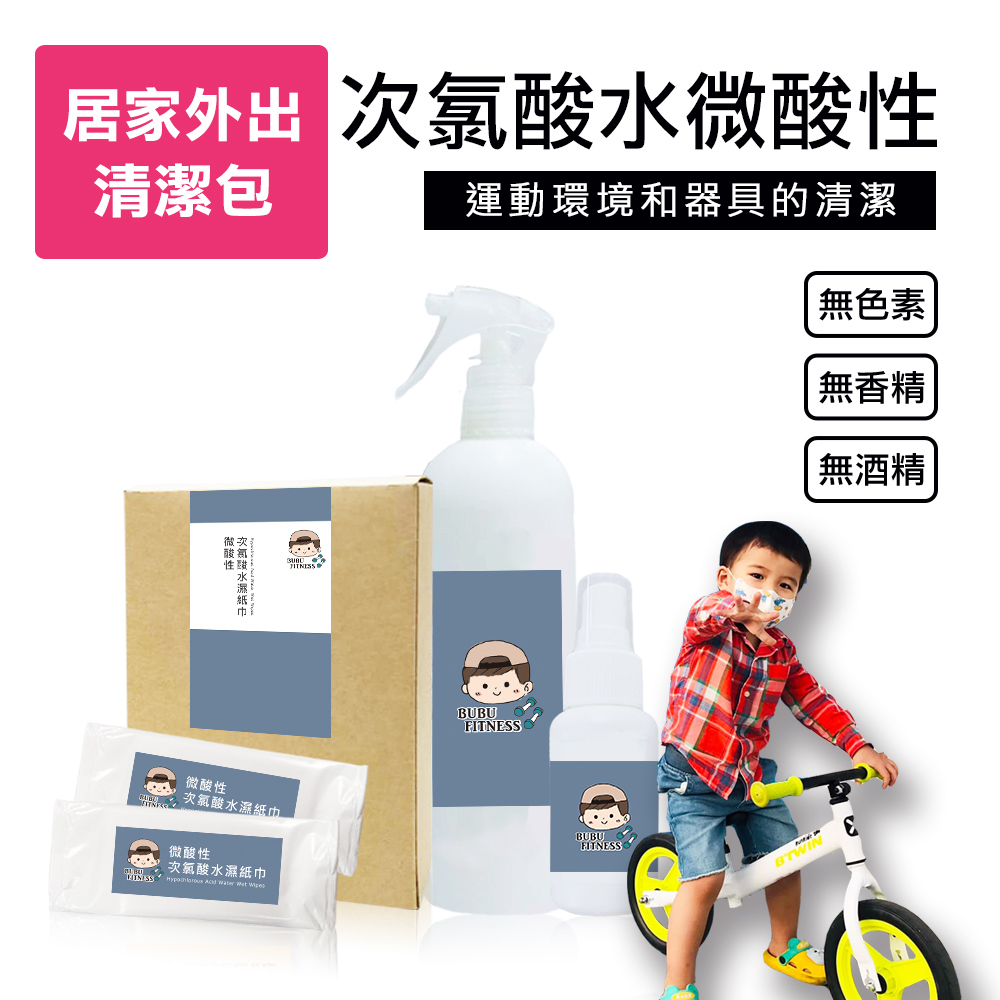 BUBUFITNESS-運動用次氯酸水外出清潔包-次氯酸水濕紙巾+家用瓶+隨身瓶