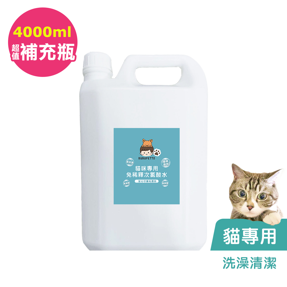 BUBUPETTO-貓咪洗澡清潔用免稀釋次氯酸水4000mlx1瓶(寵物)