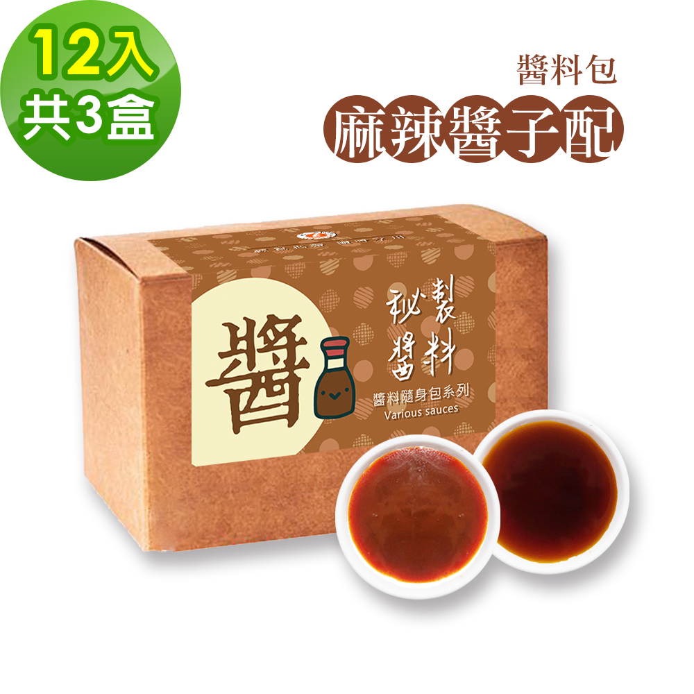 樂活e棧-秘製麻辣醬子配12包/盒,共3盒(麻辣醬20g 醋醬15g 素食 隨身包)