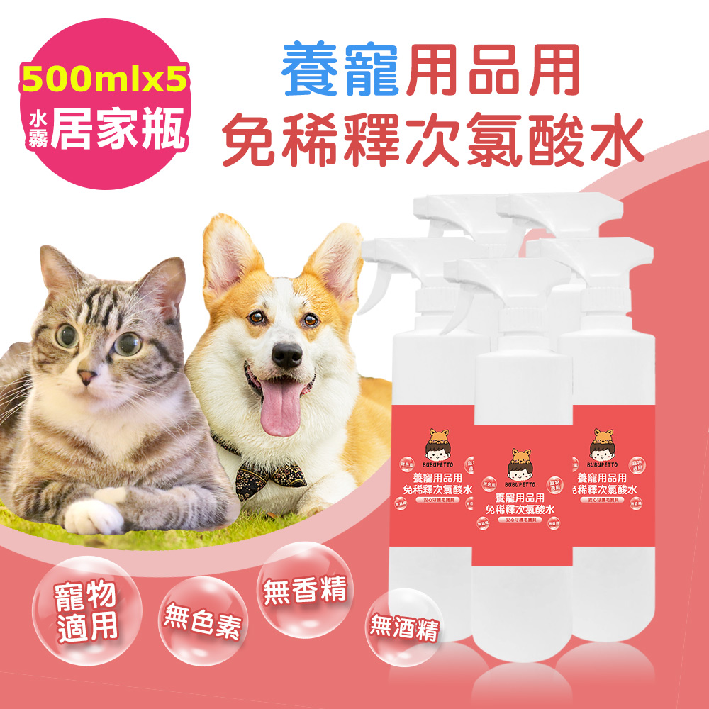 BUBUPETTO-毛孩用品用免稀釋次氯酸水500mlx5瓶(毛小孩 寵物 用品)