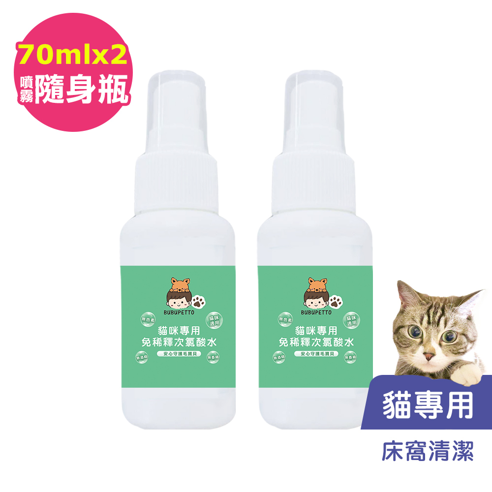 BUBUPETTO-貓咪寵物床清潔用免稀釋次氯酸水70mlx2瓶(寵物)