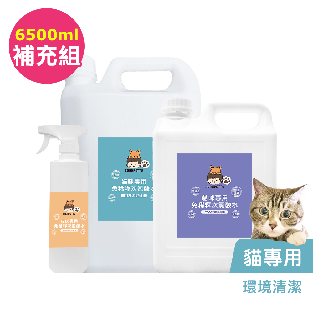 BUBUPETTO-貓咪環境清潔用免稀釋次氯酸水-6000mlx1+500mlx1(寵物 環境 器皿 用品)