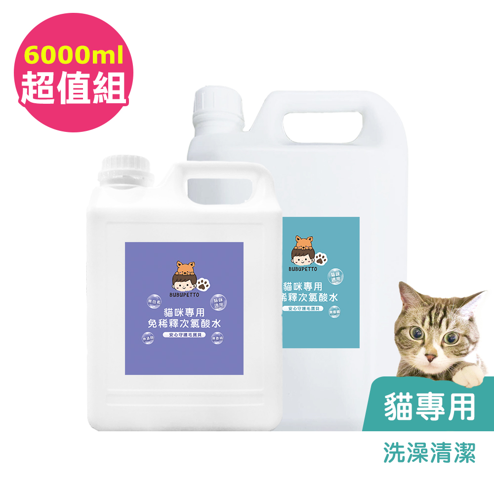 BUBUPETTO-貓咪洗澡清潔用免稀釋次氯酸水-超值組6000mlx1組(寵物 環境 器皿 用品)